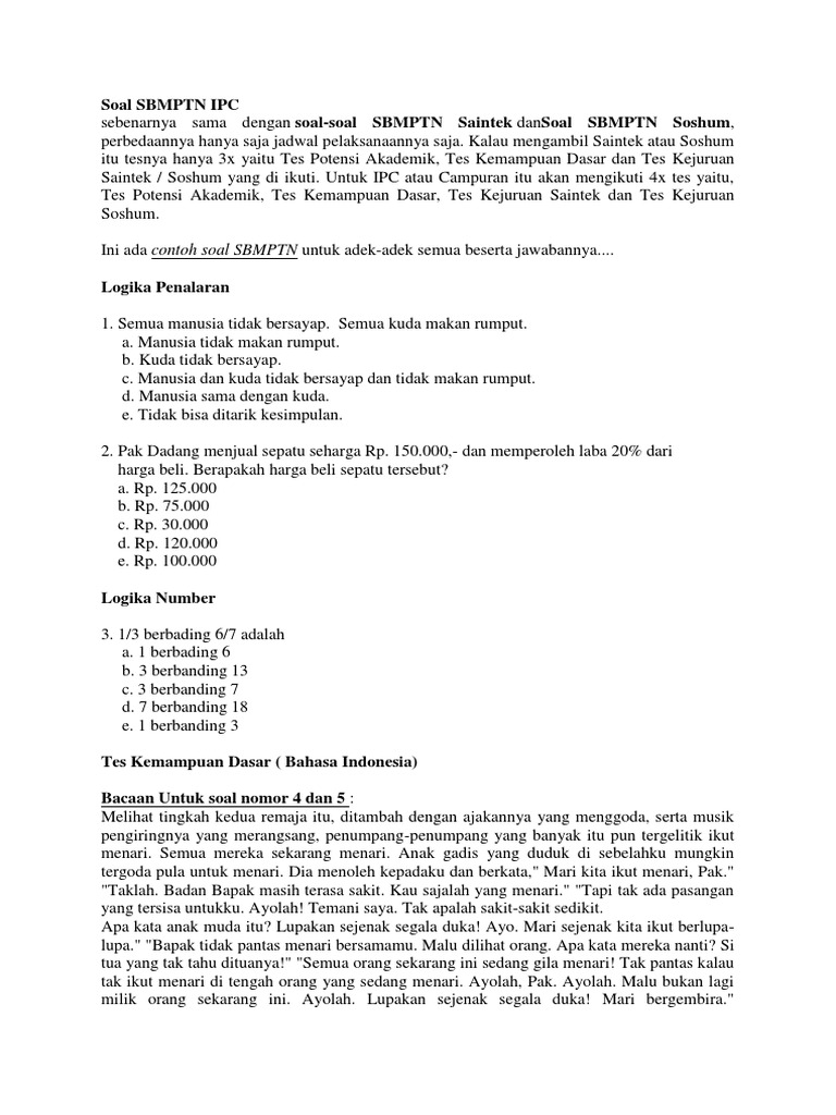 Contoh soal utbk kumpulan soal pelajaran 5. Kabar baiknya, latihan soal yang disediakan quipper blog, lengkap dengan jawaban beserta pembahasannya, lho. Soal utbk 2019 2020 terbagi menjadi soal utbk tps soal utbk tka saintek dan soal utbk tka soshum. Seleksi masuk perguruan tinggi pada jalur sbmptn. Download dan share aplikasi ini kepada teman kalian agar kalian mendapat berkah dan pahala apabila teman kalian pun mendapat nilai yang bagus dan memuaskan.
